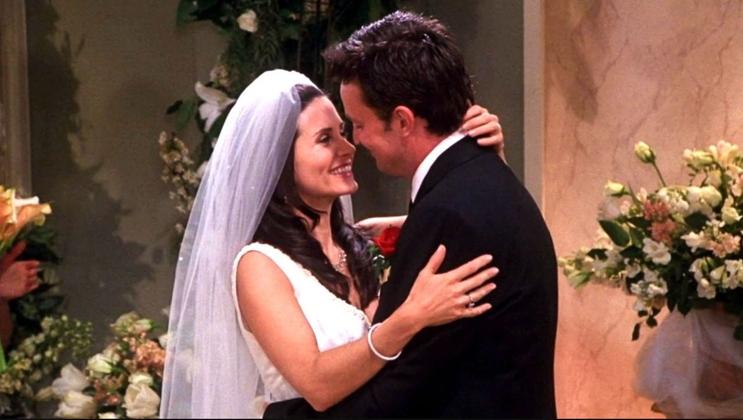 Forget Ross and Rachel and their tiresome “we were on a break” back-and-forth. The real star couple of Friends was Chandler (Matthew Perry) and Monica (Courteney Cox), whose surprise hook-up at the end of the fourth season revitalized the series. A season of clandestine romance and slow leakage of the news—”they don’t know that we know they know”—made for some of Friends’s greatest farce. (I never get tired of the scene when Phoebe and Chandler pretend to seduce each other in hopes of breaking each other.) The proposal, eventually, is so well-earned that it rings with real emotion, as if two of your real friends have finally found happiness.